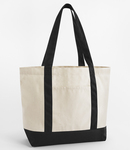 Premium heavyweight fabric.Soft cotton webbing carry/shoulder straps (65cm long).External slip pockets.Contrast base and handles (natural is self colour).Cut out label.Capacity 20 litres.